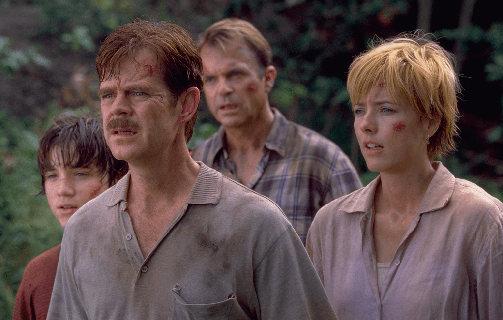 Em 2001, a Universal realizou a primeira sequência da franquia “Jurassic Park” não adaptada do material original de Michael Crichton (1942 – 2008). Com Spielberg voltando apenas como produtor executivo e Joe Johnston (Jumanji, Rocketeer) na direção, o filme introduziu novos personagens: A Família Kirby (William H. Macy e Tea Leoni) que convencem o Dr. Alan Grant (Sam Neill), único personagem do filme original a ter participação ativa, a ajudá-los a encontrar seu filho desaparecido na Ilha Sorna. Sem a presença do Dr. Malcom (Jeff Goldblum), a Dra. Ellie Satler (Laura Dern) faz uma participação menor mas crucial para o desfecho do longa.