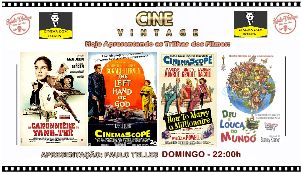 Preparem-se para mais um mergulho nas maiores trilhas sonoras do cinema com Paulo Telles em seu programa dominical na webrádio Vintage. Sempre com quatro grandes sucessos do cinema, confira o roteiro do programa deste domingo dia 2 de julho com reprises na quinta feira dia 7 de julho às 22 horas e sábado dia 9 de julho às 17 horas. Lembrando que o “Cine Vintage” é “A sala de cinema das noites de domingo“.