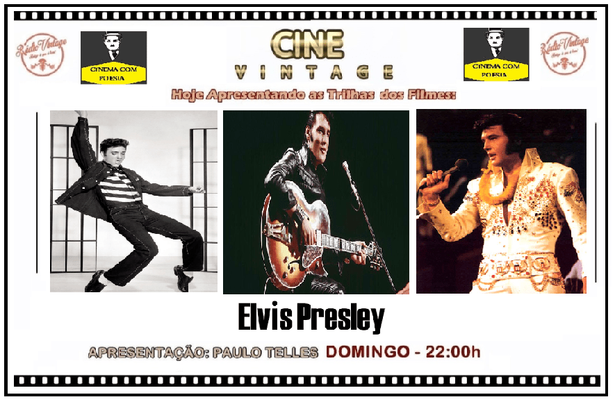 Paulo Telles preparou um domingo especial para com grandes sucessos do rei do rock n’roll. A Elvismania está coroada nas telas com o excelente filme de Baz Luhrmann. O Cine Vintage aproveita e seleciona vários momentos icônicos de Elvis ao longo de três décadas. Amantes do cinema, fiquem ligados no programa dominical da webrádio Vintage neste domingo dia 24 de julho às 22 horas, com reprises na quinta feira dia 28 de julho às 22 horas e sábado dia 30 de julho às 17 horas. Lembrando que o “Cine Vintage” é “A sala de cinema das noites de domingo“.