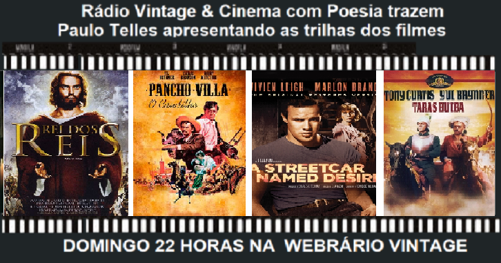 Paulo Telles preparou um final de semana de gala para os amantes do cinema clássico. Fique ligado no programa dominical da webrádio Vintage. Sempre com quatro trilhas de grandes sucessos do cinema, confira o roteiro do programa deste domingo dia 23 de outubro com reprises na quinta feira dia 27 de outubro às 22 horas e sábado dia 29 de outubro às 17 horas. Lembrando que o “Cine Vintage” é “A sala de cinema das noites de domingo”. Leia abaixo as sinopses dos filmes da noite e seus respectivos maestros.