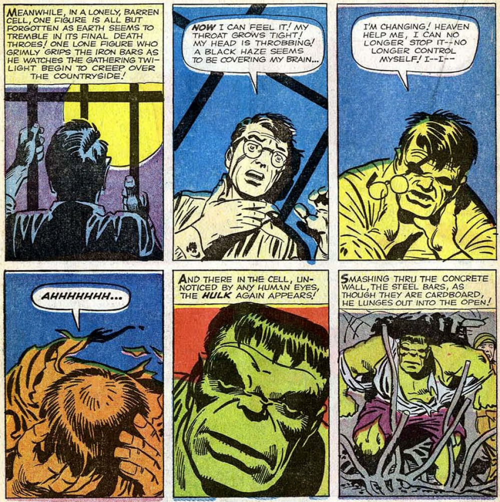 Dando continuidade ao nascimento da Era Marvel das HQs capitaneada por STAN LEE, temos duas grandes criações no ano de 1962, a saber: O Incrível Hulk no título THE INCREDIBLE HULK #1 e o Espetacular Homem-Aranha, na derradeira edição do título AMAZING FANTASY #15 (não, eu não me esqueci do Homem-Formiga que surgiu também em 1962 nas páginas de TALES TO ASTONISH, mas o foco no momento são as principais criações, e nosso querido Doutor Pym só foi ganhar maior relevância depois que se juntou aos Vingadores, ok?😁😉). O Hulk partiu da ideia que Stan desejava ter um monstro como protagonista, inspirado em clássicos como o filme Frankenstein de 1931 (estrelado por Boris Karloff) e o livro “O Estranho Caso do Dr. Jekyll e do Sr. Hyde” de Robert Louis Stevenson (chamado por aqui de “O Médico e o Monstro”), uma vez que Lee desejava conferir ao personagem a “identidade secreta” (entre outras características), um dos recursos mais essenciais e indispensáveis aos quadrinhos na época! A partir dessas premissas, Stan Lee acompanhado do “Rei dos Quadrinhos” JACK KIRBY, nos apresentam o doutor Bruce Banner, renomado físico nuclear de uma base militar que lidera um teste supervisionado pelo Exército norte-americano com sua maior criação, a Bomba Gama! Inadvertidamente, um adolescente chamado Rick Jones fura o cerco de proteção do exército e adentra a área de testes pouco tempo antes da detonação da bomba! Ignorando a própria segurança, Banner ordena a suspensão da contagem regressiva e corre para tentar salvar Jones! No entanto, a ordem de suspensão da contagem é ignorada pelo assistente do cientista (que na verdade era um espião russo (!) que desejava obter os esquemas de construção e montagem do dispositivo) e a contagem prossegue! Banner só tem tempo de jogar Rick Jones numa vala de proteção num segundo, e no instante seguinte, com a explosão da bomba, tem seu corpo bombardeado com uma dose maciça e mortal de radiação gama que, ao invés de matá-lo, o amaldiçoou com a sina de se transformar num grotesco, poderoso e monstruoso ser de pele CINZA (na primeira edição, pelo menos) que os soldados logo apelidam de “HULK”! As primeiras histórias do personagem vão definindo suas bases, como o elenco de coadjuvantes (Betty Ross, Rick Jones e General Ross) e algumas características que apenas futuramente serão melhor detalhadas! A princípio o Hulk só aparecia à noite, depois as mutações passaram a ser induzidas pelo próprio Banner a partir de um projetor Gama, em casos de necessidade! A mudança na cor da pele do Hulk surgiu porque existiam muitos problemas técnicos de impressão com a cor cinza, então Lee optou pelo verde a partir da segunda edição do título, tendo permanecido assim até meados da década de 1980 (mas isso é conversa pra outro post)!