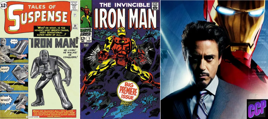 Novamente pensando em criar algo que fosse realista, um herói com uma espécie de calcanhar de Aquiles mas abordando o avanço tecnológico observado na vida real . Assim surgiu a figura de Tony Stark, ferido na guerra do Vietnã com uma condição cardíaca fatal a não ser que uma placa metálica inventada pelo gênio científico de Stark o mantivesse vivo. Daí a criação de uma armadura high tech o leva a repensar seus atos, levando a se tornar o Homem de Ferro, estreando na revista Tales of Suspense #39 (março de 1963), com desenhos de Don Heck que utilizou o cinza e um visual que lembrava o homem de lata de O Mágico de Oz, modificado pouco depois para um modelo vermelho e amarelo, mais arrojado e elegante que a usada na primeira aventura. O nome do herói foi escolhido depois de Lee repassar uma lista de metais, que conferisse ao personagem um senso de poder. Em Tales of Suspense #50, surgiria o Mandarim, que se tornaria o arquiinimigo de Stark. Nas primeiras histórias desse período surgiriam Happy Hogan e Pepper Potts (guarda costas e secretária, apaixonada por Stark), o Gavião Arqueiro, a Viúva Negra e os vilões Dínamo Escarlate e Homem de Titânio, tendo esse inclusive se tornado canção de Paul McCartney & The Wings em 1975 (“Magneto and Titanium Man“). Com a saída de Don Heck, Gene Colan passa a fazer os desenhos do Homem de Ferro, mas Lee deixa o título em Tales of Suspense #99 (1968), sendo a revista rebatizada The Invincible Iron Man #1 com Archie Goodwin e Gene Colan, a partir de maio de 1968.