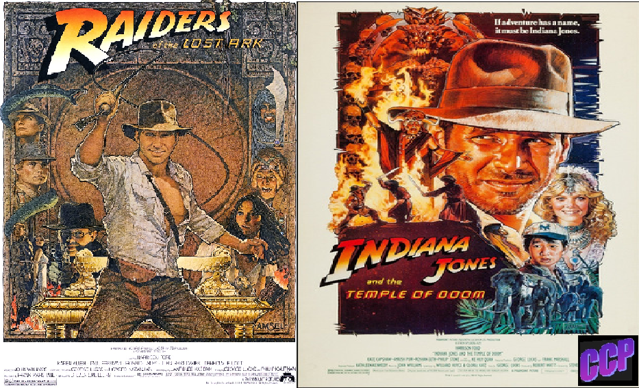 No final de 1977, George Lucas e Steven Spielberg estavam de férias no Havaí quando lamentavam nunca ter tido a oportunidade de dirigir um filme de 007. O sucesso de Star Wars Episódio IV – Uma Nova Esperança, em uma época em que este ainda era chamado Guerra Nas Estrelas, convenceu ambos a recriar o clima dos antigos seriados em capítulos dos anos 30 e 40, na figura de Indiana Smith, um personagem que o próprio Lucas criara no passado. O personagem, rebatizado de Indiana Jones, sendo um arqueólogo, permitiria uma riqueza de aventuras centradas em relíquias históricas. Demorou alguns anos para que a história imaginada por George Lucas viesse a ser roteirizada por Lawrence Kasdan, ganhasse o investimento da Paramount e escalasse o nome de Tom Selleck como protagonista. Como é bem sabido, na época Selleck estrelava na TV a série de detetive Magnum, mas os produtores desta não liberaram o popular astro. Foi nesse vácuo de escalação que o nome de Harrison Ford foi lembrado e as gravações começaram em La Rochelle, na França, depois na Inglaterra e Tunísia. A estreia de Os Caçadores de Arca Perdida no natal de 1981 foi seguida de uma bilheteria milionária e uma enxurrada de outros filmes e séries seguindo o mesmo gênero. No filme, o arqueólogo Indiana Jones (Ford) precisa encontrar a Arca da Aliança, uma relíquia bíblica que contém os dez mandamentos. Como o portador do artefato se torna invencível, os nazistas também vão fazer de tudo para adquirir esse precioso objeto. Para sua caçada, Indy conta com a ajuda de seus amigos Sallah (John Rhys Davis) e Marcos Brody (Denholm Elliot) , além de um amor de seu passado, a jovem Marion Ravenwoord (Karen Allen). O sucesso satisfez a público e crítica e dois anos depois já entrara em pré produção um segundo filme. Muito antes da moda das “prequelas” (sequência explorando eventos anteriores ao primeiro filme), Spielberg volta para dirigir Indiana Jones & O Templo da Perdição, lançado em 1984, com roteiro de Gloria Katz e Willard Huyck para uma história de George Lucas. Indiana Jones tem como missão resgatar uma pedra roubada por um cruel feiticeiro na Índia. Ele descobre uma mina onde crianças são escravizadas e se depara com cultos de sacrifício humano nas catacumbas de um antigo palácio. Em sua viagem ao Palácio de Pankot, na India, o intrépido aventureiro leva junto o pequeno orfão Short Round (Jonathan Ke Quan) e a cantora Willie Scott (Kate Capshaw). Com uma narrativa inspirada no clássico Gunga Din (1939), Spielberg nos conduz por uma montanha russa de perigos com gravações feitas no Sri Lanka, Macau, Londres e Califórnia. O filme faturou $333.11 milhões mundialmente, com $180 milhões na América do Norte e o equivalente a $153.11 milhões em outros mercados. Foi durante a produção desse filme que Spielberg conheceu a atriz Kate Capshaw, que veio a se tornar a segunda Sra. Spielberg.
