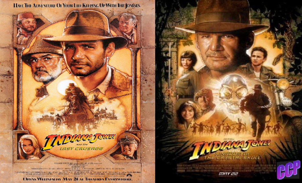 A aventura continua em Indiana Jones & A Última Cruzada (1989) onde O arqueólogo Indiana Jones embarca em uma missão perigosa e cheia de aventuras para salvar seu pai, o professor Henry Jones, que foi sequestrado por nazistas e para tentar encontrar o lendário Santo Graal, cálice que Jesus teria usado na Última Ceia. O roteiro de Jeffrey Boam para a história de George Lucas e Menno Meyjes mostra um Indy adolescente, vivido por River Phoenix (1970-1993), na sequencia inicial, saltando no tempo para que Harrison Ford atravesse o continente junto de seu pai vivido por Sean Connery, uma escalação de elenco irônica e criativa se lembrarmos que Spielberg & Lucas já remoeram a frustração de nunca terem feito um filme de James Bond. As filmagens ocorreram na Espanha, Itália, Reino Unido, Turquia e Jordânia, e retomaram a parceria de Indy com Brody (Elliot) e Sallah (Davis) do primeiro filme. O resultado foi uma bilheteria de US$ 474 171 806 no mundo, e um Oscar de Melhor Edição de Som no ano seguinte. Apesar do apelo popular para uma quarta aventura de Indy, esta só se tornou real 19 anos depois quando chegou às telas Indiana Jones & O Reino da Caveira de Cristal, deslocando a ação dos anos 30 para os anos 50 para justificar o envelhecimento do astro Harrison Ford. Durante a Guerra Fria, Indiana Jones e o jovem Mutt (Shia Lebouf) buscam a Caveira de Cristal, um objeto místico de grande valor, mas logo percebem que não estão sozinhos. Soviéticos liderados pela cruel Irina Spalko (Cate Blanchett) também querem o objeto para tentar dominar o mundo através dele. O filme ainda permitiu aos fãs o reencontro dos fãs com Marion Ravenwood (Karen Allen). Como Spielberg não queria se afastar da família, todas as filmagens foram nos Estados Unidos. As cenas de deserto foram feitas no Novo México, a perseguição no campus na Universidade de Yale em Connecticut, a selva no Havaí (onde Spielberg também filmara Jurassic Park) e cenas de estúdio e no aeroporto na Califórnia. Os técnicos da Industrial Light & Magic também filmaram as Cataratas do Iguaçu para as cenas com cachoeiras, já que um furacão impediu Spielberg de fazê-lo no Havaí, e a floresta Amazônica para acrescentar elementos que tornariam a selva mais próxima da brasileira.O filme estreou com $101 milhões nos primeiros três dias na América do Norte, e conseguiu $311 milhões nos primeiros 5 dias mundialmente. Terminou sua trajetória nas bilheterias com $317 milhões nos Estados Unidos (a terceira maior bilheteria do ano, depois de Batman O Cavaleiro das Trevas e Homem de Ferro), e $786 milhões mundialmente (a segunda maior do ano, depois de Batman O Cavaleiro das Trevas).