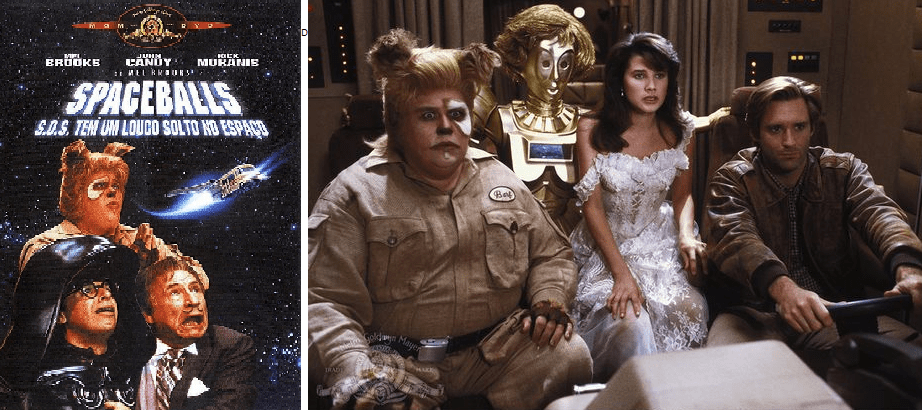 Depois que o planeta Spaceball virou um deserto, o maquiavélico presidente Skroob (Também vivido por Mel Brooks) resolve tomar o ar de Druidia, o planeta vizinho, e manda o vilão Lord Dark Helmet (Rick Moranis) sequestrar a princesa Vespa (Daphne Zuniga) e exigir de seu pai, o rei, que libere todo o ar. Para seu resgate seguem Lone Starr (Bill Pullman) e Barf (John Candy), dois mercenários espaciais, corruptelas cômicas de Han Solo e Chewbacca. Quanto à força, esta virou o Schwartz, piada com as origens judaicas do diretor, que não mede esforços para demolir os ícones do gênero como ao colocar John Hurt reprisando sua cena de morte para o nascimento de um Alien cantante com ambições no showbiz ou a sequência dos Spaceballs chegando a uma praia e recebidos por macacos falantes que dizem “Spaceballs ! Oh Shit. There goes the planet)”. O ator Michael Wislow, o Jones da Loucademia de Polícia aparece como o operador de radar e repete sua habilidade de criar sons, reproduzindo todos os efeitos sonoros ouvidos. O próprio Mel disse na ocasião que assim economizou uns US$ mil reais de seu inflado orçamento, cerca de US$ 25 milhões gastos, seu filme mais caro até hoje. Um filme divertido mesmo que a fórmula pareça por vezes forçada ou desgastada, principalmente com o grande achado de por Rick Moranis como uma versão pra lá de engraçada do icônico Darth Vader. No próximo artigo vamos descobrir uma droga de vida, e um curioso filme em sua carreira.