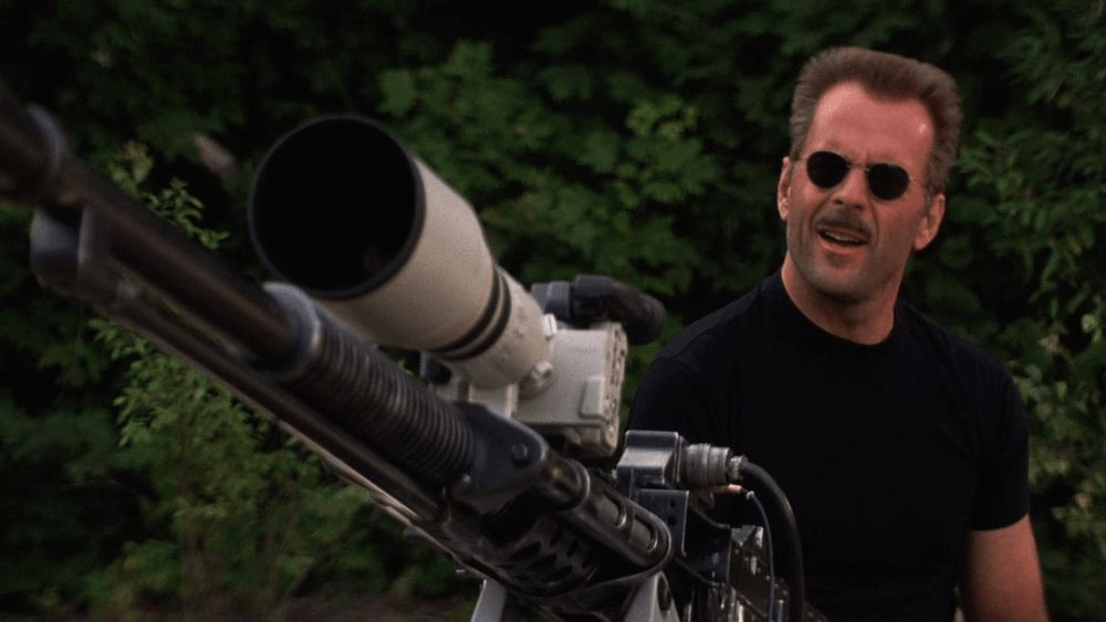 Depois de ser o herói dos filmes de ação tantas vezes, Bruce resolver fazer um vilão, assassino frio e ardiloso cujo verdadeiro rosto ninguém sabe. “O Chacal” é refilmagem, daquelas bem livres do material original, do filme de Fred Zinnerman adaptando o livro de Frederick Forsythe. Perseguindo o vilão está um ex-terrorista do IRA interpretado por Richard Gere. O curioso é que Gere havia recusado o convite para viver John McClane em 1988, papel que foi para Bruce. Desta vez os astros contracenam em lados opostos, que inicialmente seria Gere como o Chacal e Bruce como seu perseguidor, mas os atores preferiram trocar de papéis.