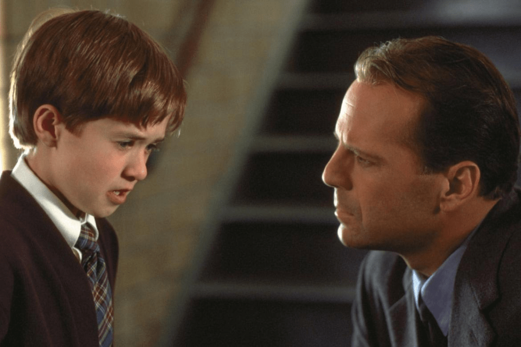 Uma das melhores atuações de Bruce Willis foi “O Sexto Sentido“, filme de estreia do diretor indiano M.Night Shymalan. Mais contido que o habitual, Bruce atua em papel feito diretamente para ele, conforme Shymalan declarou pouco tempo depois. O ator ainda demonstra uma incrível química com o pequeno Haley Joel Osment, então com 11 anos. O final do filme foi um dos mais comentados na época e graças à interação dos dois atores.