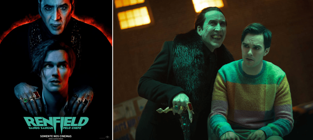 Nossos tradutores de vez em quando saem com uns sub títulos bem curiosos. È o que ocorre com essa aguardada comédia de terror, trazendo Nicolas Cage como Dracula e Nicholas Hault como Reinfield. Dirigido por Chris McKay e escrito por Ryan Ridley, baseado em uma ideia original de Robert Kirkman (The Walking Dead). No filme Nicholas Hoult interpreta Renfield, o lacaio do Conde Drácula que decide deixar seu emprego depois de se apaixonar. A estreia nos cinemas será em 27 de abril.