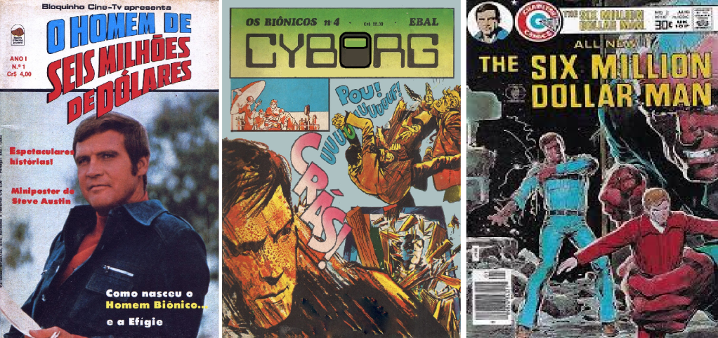 Um fato digno de nota é que a cena do acidente de Steve Austin no episódio piloto se utilizou de fotogramas da NASA de um acidente real em 1967 com o piloto Bruce Peterson. O Homem de Seis Milhões de Dólares teve histórias em quadrinhos publicadas pela Charlton Comics sob o título CYBORG, que tiveram poucas edições publicadas no Brasil pela Ebal e pela Bloch no começo da década de 1980, enquanto que a série da Mulher Biônica teve uma tentativa de ressurgimento numa série homônima estrelada por Michelle Ryan e Miguel Ferrer em 2007, mas logo cancelada no ano seguinte depois de apenas 8 episódios. Em 2011, a Dynamite Entertainment lançou uma nova série em quadrinhos chamada THE BIONIC MAN, nunca publicada no Brasil, que atualiza primorosamente a série de tevê, baseada no argumento de Kevin Smith que coescreve o roteiro ao lado de Phil Hester com ilustrações de Jonathan Lau! As capas de ALEX ROSS são uma atração à parte! Essa série durou até a edição #24 e foi retomada em março de 2014 com o título THE SIX MILLION DOLLAR MAN – SEASON SIX, trazendo a continuação das histórias da série de tevê, com roteiro de James Kuhoric e arte de Juan Antonio Ramirez, com as capas de Ross! Penso que seria uma ótima opção de lançamento aqui em terras tupiniquins, ainda que via financiamento coletivo! Pena que nenhuma editora tenha se interessado até o momento! Por fim, ainda que 1978 tenha sido o último ano das séries televisivas originais dos nossos biônicos favoritos, certamente não seria a última vez que os veríamos! Mas isso é conversa pra outro post!😉