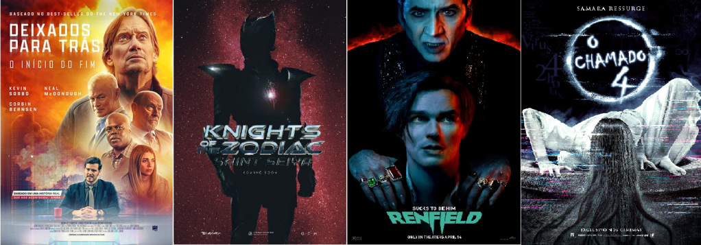 Final de semana prolongado pelo feriado do próximo dia 1º de maio tem as telas recheadas de lançamentos. Para começar o aguardado Renfield – Dando o Sangue pelo Chefe, comédia de terror com Nicholas Hoult (X Men Apocalipse) como o lacaio de Drácula, interpretado por Nicolas Cage. Se preferir um terror mais sério, tem O Chamado 4 – Samara Ressurge. Em meio a vampiros e fantasmas ressuscitados, temos a adaptação live action do anime Os Cavaleiros do Zodíaco – Saint Saya, o drama pós apocaliptico Deixados para Trás : O Início do Fim e o documentário sobre o saudoso Jair Rodrigues – Deixe que Digam. Vamos às telas no circuito: