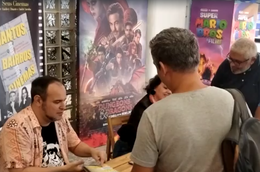 Na sexta feira dia 28 de abril aconteceu no café do Cine Roxy o lançamento do livro Santos, Seus Bairros, Seus Cinemas, de André Azenha e Audrey Duarte. O livro relembra os cinemas de bairro de Santos, traz depoimentos de amantes da sétima arte que mantém esse legado e é repleto de imagens. 54 exemplares da obra serão entregues gratuitamente para bibliotecas de escolas municipais e os autores farão palestras em escolas da Zona Noroeste e Morros. “Nossa gratidão a quem prestigiou e apoiou o livro Santos, Seus Bairros, Seus Cinemas. Obrigado Audrey Duarte @audreyduarte1 , parceira nessa jornada. Meu amor Paula Azenha @paulaazenha86 por todo o apoio neste processo e que fez todo o registro. Minha mãe e meu irmão, Regina @maenerd013 e Cláudio, pela força. Charlie, nosso filhotinho. Facult Santos, que acreditou no projeto. Cine Roxy @ciner, pelo espaço, por tudo. Todos que deram depoimentos: @waldemar.lopes.1 , Eduardo Ricci, Sérgio Williams, Angela Madeiras, Márcia Okida @marciaokida . Grupo Tribuna @atribunasantos , que cedeu imagens, bem como Memória Santista. Toda a imprensa que noticiou. @criszinezi pela parceria nas bibliotecas das escolas públicas municipais. Essas são algumas fotos. Tem muito mais e depois faremos um vídeo com todo mundo“, disse André Azenha do Grupo Cine Zen e criador do Santos Film Fest, um dos maiores eventos culturais do país.
