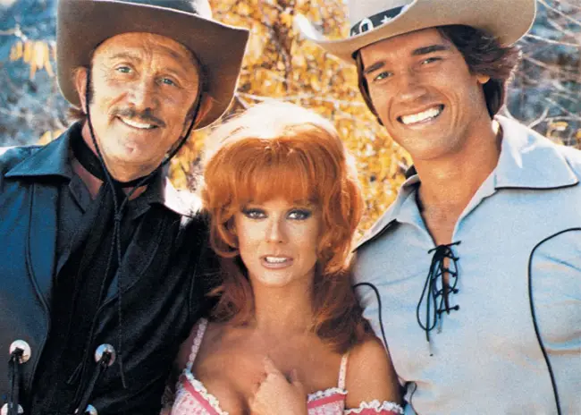Em 1979, Schwarzenegger vive o personagem Estranho Bonito no faroeste/comédia Cactus Jack, o Vilão. O inocente cowboy pensa que está arriscando a própria vida ao tentar parar alguns cavalos correndo pela cidade, mas acaba interrompendo o trabalho dos bombeiros que queriam apagar o fogo de um bordel. Ann-Margret (Ânsia de Amar) e Kirk Douglas (Spartacus) também integram o elenco do filme dirigido por Hal Needham (Hooper – O Homem das Mil Façanhas). Quem rouba a cena, no entanto, é o cavalo Whisky, em clima de desenho animado.