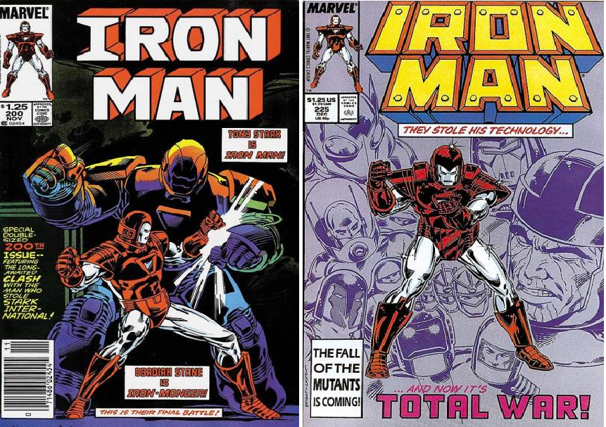 #4. Quando Tony Stark abandonou sua identidade de Homem de Ferro durante uma segunda crise de alcoolismo escrita por Denny O’Neil, Tony perdeu o controle da Stark Enterprises para Obadiah Stane, e depois desta longa fase Stark recupera sua fortuna e enpresa e cria uma nova armadura, conhecida como Centurião Prateado, preparada para derrotar Stane, que se torna o Monge de Ferro. Parte deste longo arco foi usado no primeiro filme do Homem de Ferro, estrelado por Robert Downey Jr. Originalmente publicada em Iron-Man 197 a 200, em 1985, por Dennis O’Neil (texto), Rick Buckler, Herb Trimpe e Mark D. Bright.