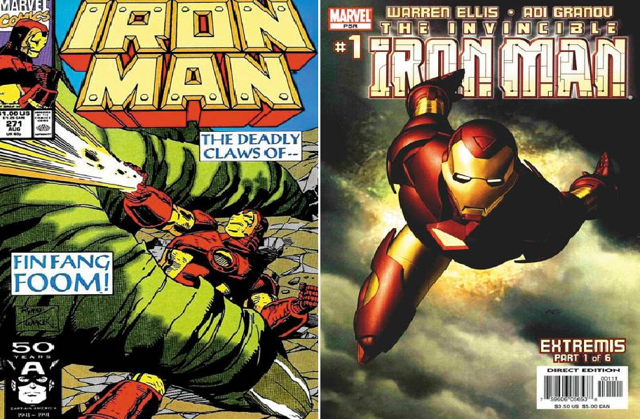 #7. No arco Extremis, muito mal adaptado no filme Homem de Ferro 3, desenvolvido por Warren Ellis e Ari Gradnov, um vírus tecnorgânico experimental – que visava aperfeiçoar o soro do supersoldado do Capitão América – é roubado por um grupo criminoso e injetado em um bandido comum. Esse homem logo se transforma em uma poderosa máquina de matar que cruza o país causando destruição. Ao tentar detê-lo, o Homem de Ferro é sumariamente derrotado. Assim, desesperado, Stark recorre à velha amiga Maya Hansen para um ato radical: injetar em si mesmo o vírus extremis. Como resultado, Stark e a armadura se tornam uma coisa só. Pela primeira vez em sua história, Tony Stark se tornava realmente um superhumano e não somente alguém usando uma armadura.