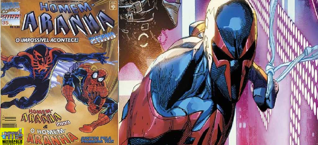 Miguel O’Hara, um engenheiro de descendência islandesa e mexicana que trabalhava na gigante corporativa Alchemax. Mesmo relutante em participar de um experimento sobre o processo de gravação de códigos genéticos na fisiologia humana, O’Hara aceitou conduzir testes em um ser humano, que acabou morrendo no processo. Descontente com o episódio, O’Hara tentou usar o experimento de gravação de códigos genéticos para tentar se livrar da substância, e, mesmo tendo o processo sabotado em uma tentativa de matá-lo, O’Hara sobreviveu. Mas, como consequência, O’Hara teve seu DNA mesclado aos genes de uma aranha. E, inesperadamente, em vez de morrer, ganhou vários poderes. Além de força superior e agilidade proporcionais a uma Aranha, tal qual Peter Parker, o Homem-Aranha 2099 possui uma visão acelerada, que o permite ver objetos a distâncias maiores com perfeita clareza, inclusive com a capacidade de enxergar na mais completa escuridão. Também capaz de criar uma teia orgânica, Miguel dentes possui caninos alongados, capazes de secretar um veneno paralisante. Em 2014,o roteirista Dan Slott decidiu reviver o personagem na revista Homem-Aranha Superior, onde Miguel O’Hara volta para o ano de 2014 e encontra Peter Parker, (cujo corpo estava sob domínio de Otto Octavius). Posteriormente o personagem recebeu sua própria revista Spin-off, que durou pouco tempo. Na semana que vem voltamos ao Aranhaverso com Leo Banner nos contando sobre Miles Morales.