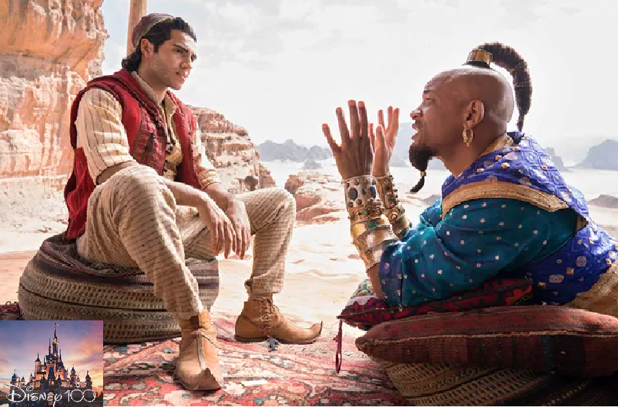 Iniciada como parte do 9º Santos Film Fest, a exposição Tributo aos 100 Anos da Disney prossegue reunindo 50 artes da equipe do Dym Art Studio, do quadrinista Denis Dym (com trabalhos na Marvel e na DC). A mostra está no primeiro piso do shoppingpatioiporanga e pode ser visitada gratuitamente todos os dias, até 24 de julho, entre 10h e 22h. Até lá, o cinema com poesia apoia a iniciativa e inicia uma sequência de matérias dos 100 anos do estúdio de Mickey Mouse. Começando vamos rever o live action Aladim, um dos melhores feitos. A história de Aladim surgiu na antiga Pérsia mostrando um rapaz humilde que se apaixona pela princesa Jasmine, mas eles não podiam ficar juntos porque Jasmine era filha do Sultão, rica, e Aladim era plebeu. Ele encontra uma lâmpada mágica que trazia um gênio capaz de realizar três desejos. Assim, Aladim chama a atenção do Sultão, enfrenta o malvado Jafar e conquista o coração de Jasmine. Aladim é jovem e corajoso pois enfrenta todos os perigos da caverna das maravilhas, e ainda os planos do maligno Jafar para se apossar do reino. Jasmine não tinha liberdade para escolher seu destino, mas mesmo que triste não se permite ter medo de Jafar. O gênio é piadista, falante, divertido e como Aladim e Jasmine, também tem um sonho, a sua liberdade. Juntos esse trio vive mil e uma aventuras e, assim, é o melhor filme da Disney com melodia emocionante.