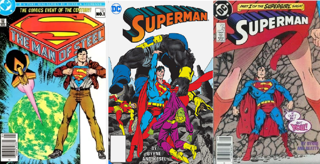 Depois da minissérie em seis edições THE MAN OF STEEL, onde restabelece os fundamentos do Homem de Aço para uma nova audiência, Byrne assumiu os títulos SUPERMAN , ACTION COMICS e ADVENTURES OF SUPERMAN prosseguindo na sua marcante redefinição do Superman. Retornou à Marvel em 1988 produzindo os títulos STARBRAND (apenas as últimas histórias do personagem Estigma do chamado “Novo Universo” à época), AVENGERS WEST COAST e AVENGERS. Em 1989 iniciou o título THE SENSATIONAL SHE-HULK, com uma abordagem da MULHER-HULK adorada por muitos até os dias de hoje, e também de boas e marcantes fases do HOMEM DE FERRO (apenas como roteirista, acompanhado dos talentosos John Romita Jr e Paul Ryan) e do NAMOR, O PRÍNCIPE SUBMARINO, numa fase que até hoje teve apenas as oito primeiras histórias publicadas, com o restante permanecendo inédito no Brasil. Depois disso, já no decorrer da década de 1990, Byrne já não estava tão em evidência, muito disso provavelmente por causa de seu temperamento forte e dificuldade de aceitar críticas ao seu trabalho, mas ainda assim produziu trabalhos marcantes como a série SUPERMAN & BATMAN – GENERATIONS, sua fase de três anos no título da MULHER-MARAVILHA (com pouquíssimas histórias publicadas no Brasil) e também a primeira história de HELLBOY, “SEMENTES DA DESTRUIÇÃO”, que escreveu baseado nos conceitos do amigo MIKE MIGNOLA, uma vez que este não se considerava na época (1992) apto o suficiente para roteirizar sozinho uma história em quadrinhos.