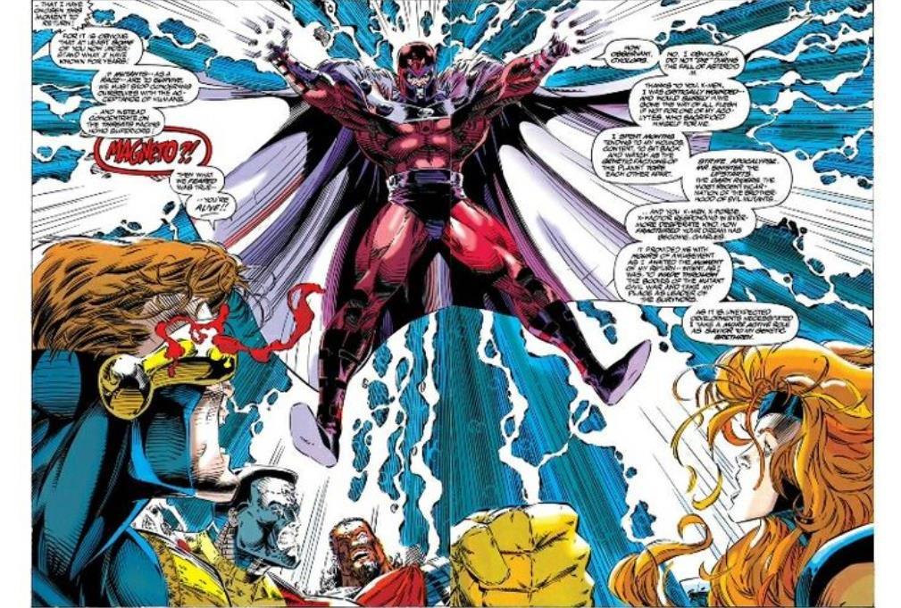 #2. Atração Fatal (1993) Magneto cria Avalon e convida todos os mutantes a se juntarem a ele na formação de uma nação mutante. Contudo, o conflito entre os pupilos de Xavier e os seguidores de Magneto é inevitável. A consequência mais impactante do arco é Xavier usando seus poderes para apagar a mente de Magneto, que antes extrai o adamantium do esqueleto de Wolverine.