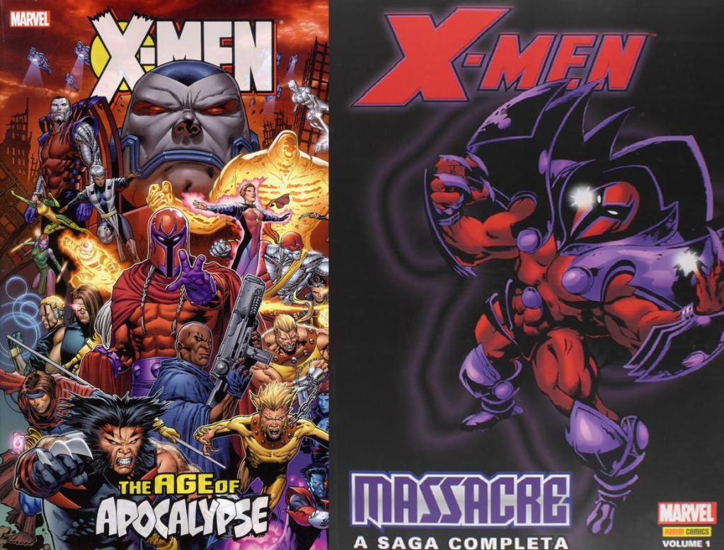 #4. A Era do Apocalipse (1995) O Mutante Legião, filho do professor Xavier, resolve voltar no Tempo e assassinar Magneto. Porém, Xavier acaba morto protegendo seu amigo e isto cria um futuro distópico onde Magneto assume o sonho de Xavier e monta os X-Men. Apocalipse surge 10 anos antes e muda completamente o futuro.