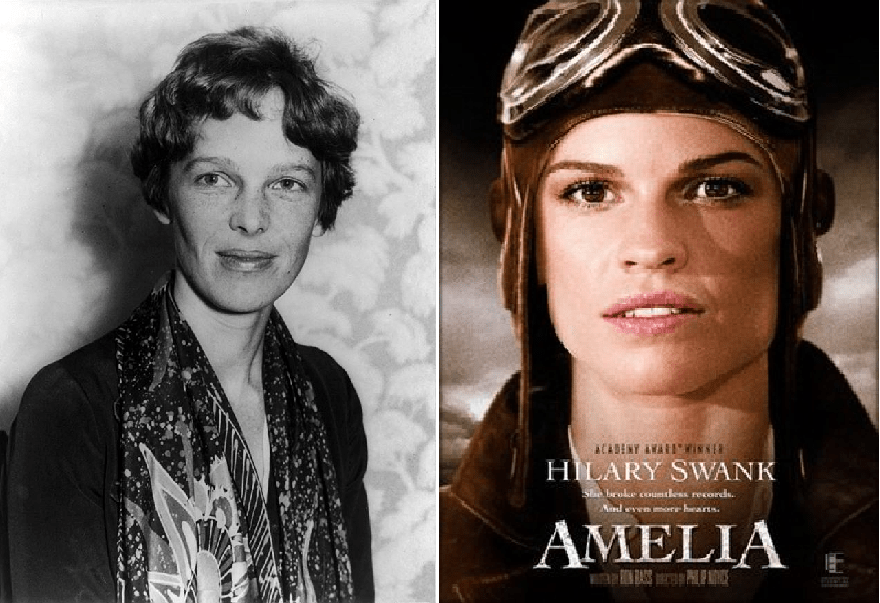 Esta mulher extraordinária viveu uma vida de aventuras que parecia sair das telas do cinema e assim foi retratada no filme dirigido por Mira Nair, com um orçamento de 40 milhões de dólares, e estrelado pela ótima Hilary Swank (Menina de Ouro). O filme se estende desde 1928, quando chama a atenção por seu destemor e audácia, vindo a realizar marcos importantes, como diversos recordes de altitude e velocidade, e tornando-se a primeira mulher a sobrevoar sozinha o Oceano Atlântico. Em 1937, Amélia se prepara para seu maior desafio: tornar-se a primeira mulher a dar a volta ao mundo pilotando um avião. Amelia viveu intensamente seus 40 anos, estabeleceu diversos recordes, escreveu livros sobre suas experiências de voo, e foi essencial na formação de organizações para mulheres que desejavam pilotar.