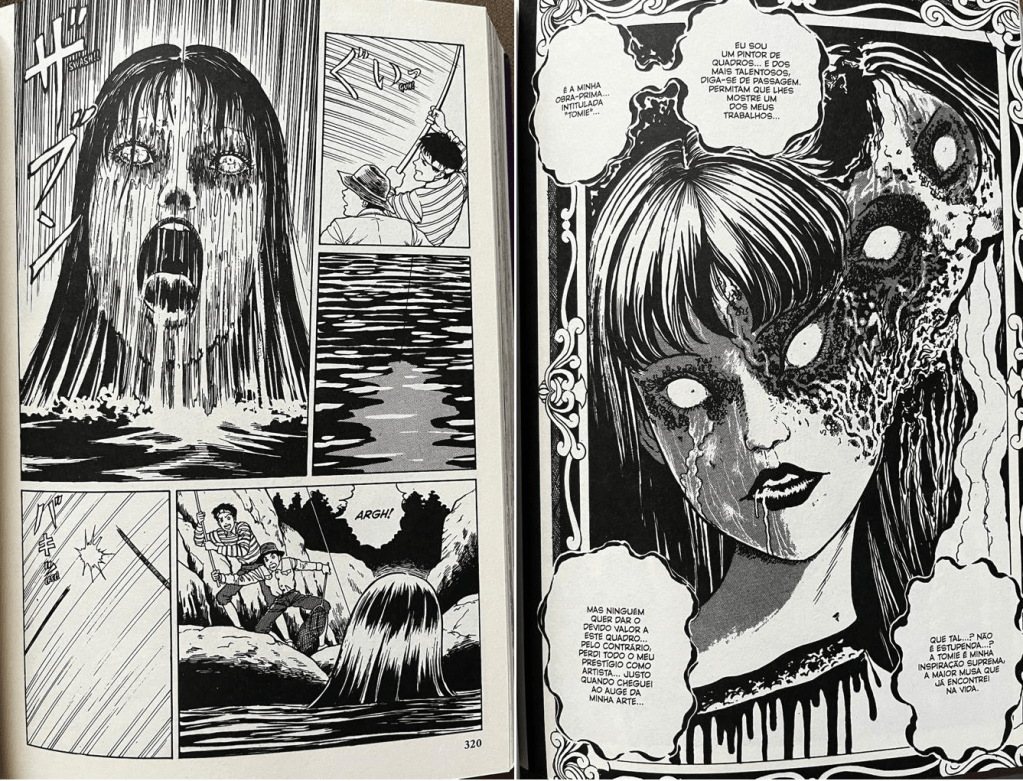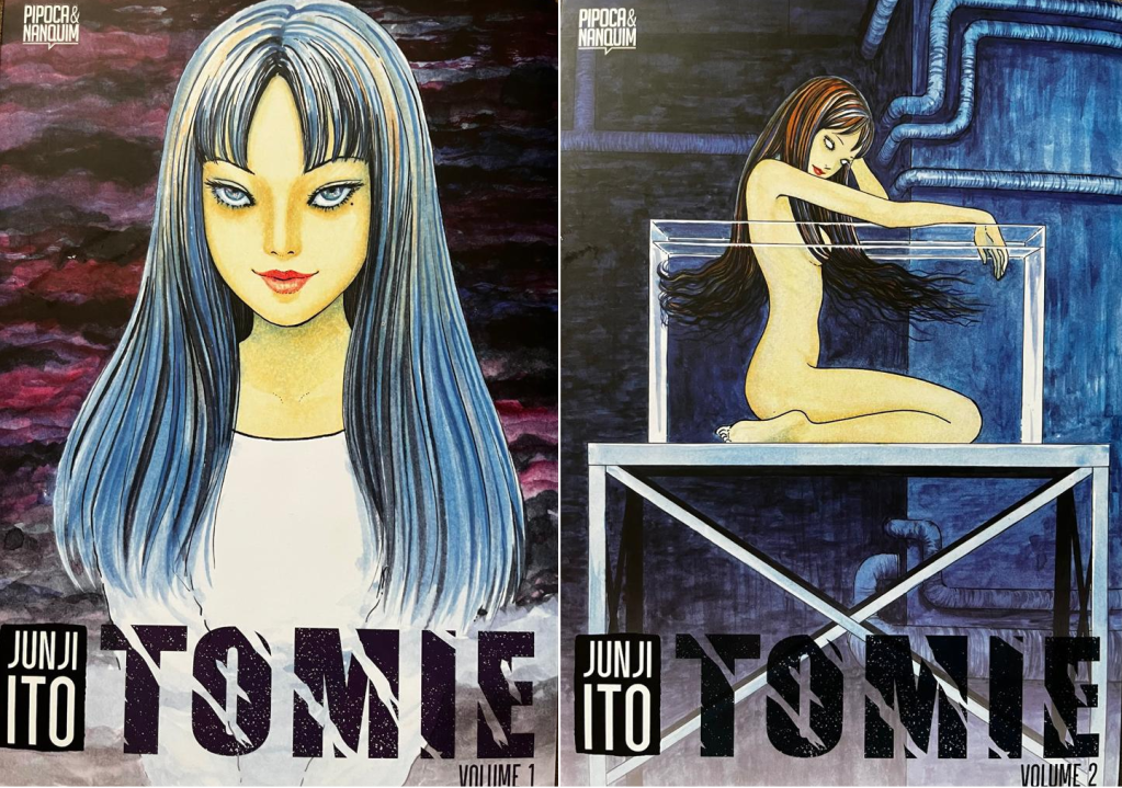 Meus estilos preferidos de filmes são ficção-científica e terror, e isso não quer dizer em absoluto que eu não curta outros gêneros. No que se refere às HQs essa premissa também se confirma, por isso mesmo adorava as antologias de terror da saudosa revista KRIPTA da editora RGE (antecessora da editora Globo) de meados da década de 1970 e começo da de 1980, que até tiveram algumas (infelizmente poucas )histórias republicadas pelas editoras DEVIR e MYTHOS alguns anos atrás. E foi exatamente esse interesse, aliado à ânsia por conhecer mais amiúde alguns lançamentos de HQs japonesas, que me levou a ler TOMIE, mangá de terror escrito e ilustrado por JUNJI ITO, originalmente publicado de forma serializada no Japão entre 1987 e 2000, trazido ao Brasil pela editora Pipoca e Nanquim em 2021 em dois belos e caprichados volumes, com formato padrão e papel pólen bold de boa gramatura.