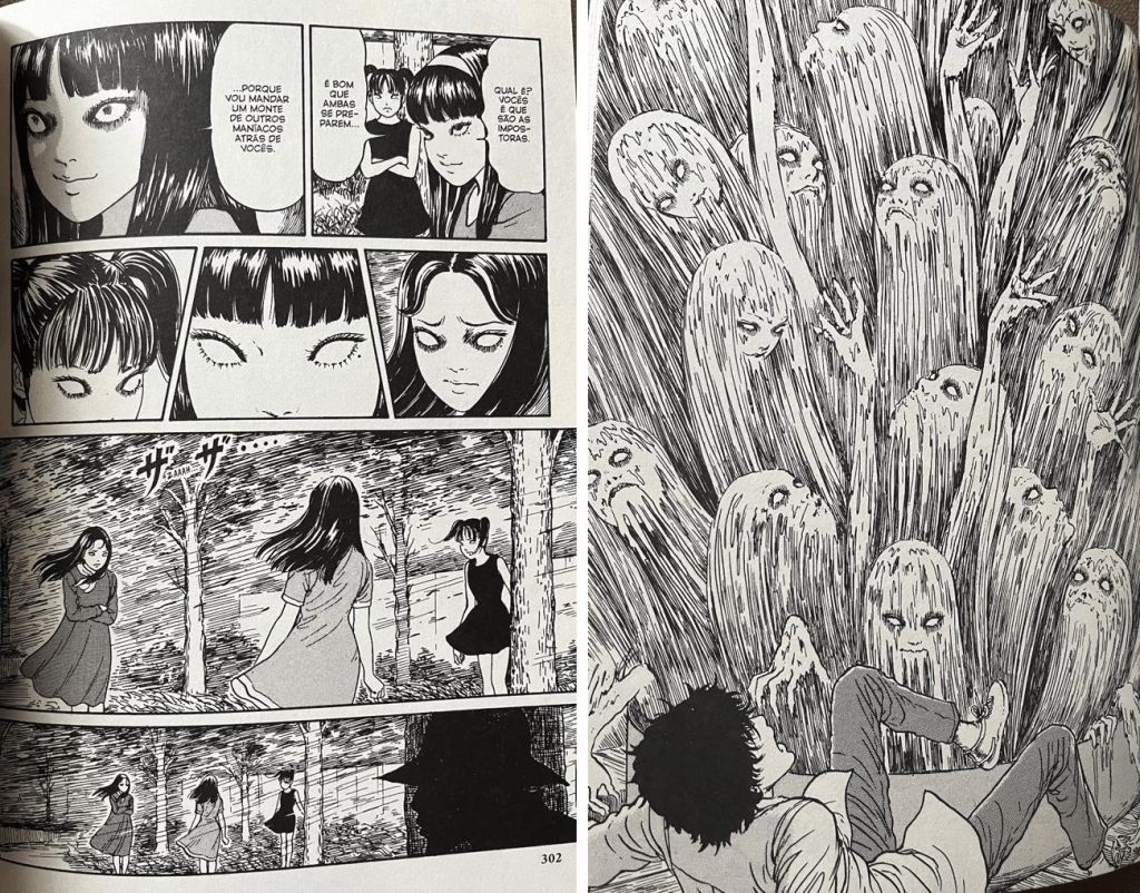 O texto não é nada primoroso, mas as tramas são conduzidas de forma muito satisfatória, cabendo à arte de Ito, com um traço bem detalhado quando a situação exige, nos entregar as cenas e situações mais perturbadoras onde as palavras não podem fazê-lo. Predominante as histórias se iniciam com aquele traço leve que vai se tornando gradativamente mais carregado na medida que os acontecimentos vão se desenrolando. JUNJI ITO atualmente é uma mania nacional, tendo muitos de seus trabalhos publicados atualmente no Brasil não apenas pela Pipoca e Nanquim, mas também por outras editoras, como por exemplo a Devir. Foi divulgado há poucos dias que o famoso mangaká virá ao Brasil pela primeira vez para participar da CCXP23. Vamos aguardar.