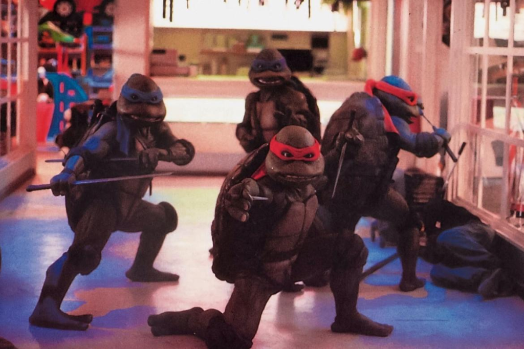A primeira adaptação das Tartarugas Ninja para live action foi dirigido por Steve Barron, trazia Josh Pais (Raphael), David Forman ( Leonardo), Michelan Sisti (Michelangelo), Leif Tilden (Donatello), James Saito (Destruidor), Kevin Clash (Mestre Splinter), Judith Hoag (April O’Neil) e Elias Koteas (Casey Jones).Vários elementos da história foram retirados da animação da TV, extremamente popular na época. Os designs das roupas de tartaruga foram feitos pela Jim Henson Creature Shop, um dos últimos trabalhos de Jim Henson (Muppets) antes de sua morte pouco depois da estreia do filme em março de 1990. Todos os quatro atores que interpretam as tartarugas também tiveram aparições rápidas no filme: David Forman (Leonardo) como um membro de gang, Michelan Sisti (Michaelangelo) como entregador de pizza, Leif Tilden (Donatello) como um mensageiro e Josh Pais (Raphael) como passageiro em um taxi, sendo este o único ator a interpretar uma tartaruga e a fazer também a dublagem de sua voz. A voz de Donatello, por exemplo, foi feita pelo ex Goonie Corey Feldman. Depois de ser atacada por trombadinhas, a repórter April O’Neil (Judith Hoag) é salva por tartarugas mutantes, que passaram a se dedicar a combater o crime desde que foram contaminadas por uma substância radioativa nos esgotos de Nova York e se tornarem guerreiros após serem treinados pelo mestre Splinter. Aliadas a Casey Jones (Elias Koteas), elas combatem a organização Foot, que lança uma onda de crimes na cidade sob o comando do perigoso Destruidor.