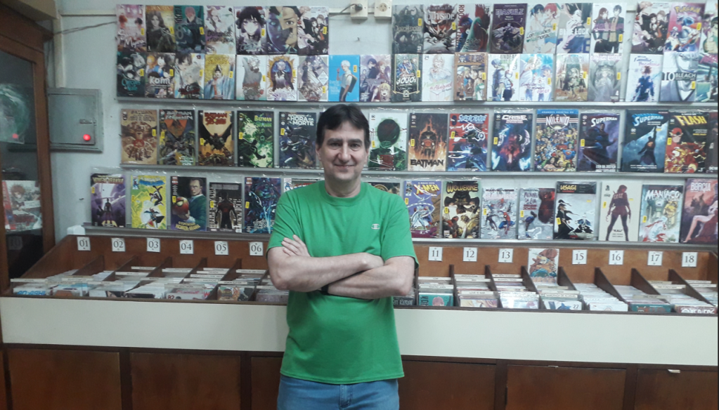 Thales: São as coletâneas as mais procuradas. As reedições dos quadrinhos antigos atraem até mesmo a garotada de hoje, que não acompanhou os lançamentos da RGE ou da Abril. As sagas antigas foram muito mal lançadas no passado, com muitos cortes. Hoje temos material muito bom como Coleção Clássica Marvel, A Saga do Batman e A Saga do Demolidor. Mesmo A Saga do Superman, que a Panini informou que vai interromper a publicação, sempre teve muita saída aqui, assim como a Saga do Homem Aranha. Toda essa coleção clássica da Marvel, que começa nos anos 60, com volumes dedicados a cada um dos heróis, é o top de vendas aqui da loja. Sempre reponho os números já vendidos porque tem muita procura.