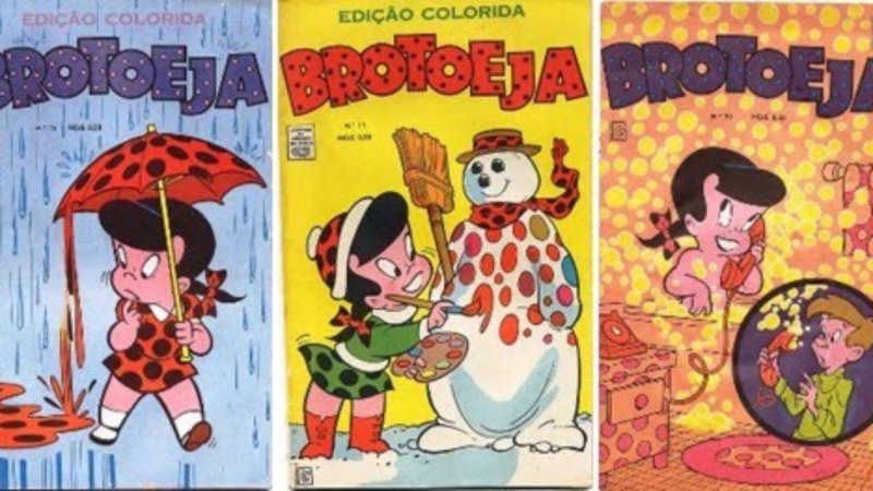 Criada pelo fundador da Harvey Comics, o cartunista norte-americano Alfred Harvey, a simpática “Brotoeja” (Little Dot) foi publicada nos Estados Unidos de 1949 a 1982 – porém, com revista própria, somente após 1953 – e teve seu auge de popularidade entre 1965 e 1970. Entre 1982 e 1986, após o seu cancelamento, a publicação permaneceu estagnada, retornando às bancas esporadicamente de 1987 a 1994.
