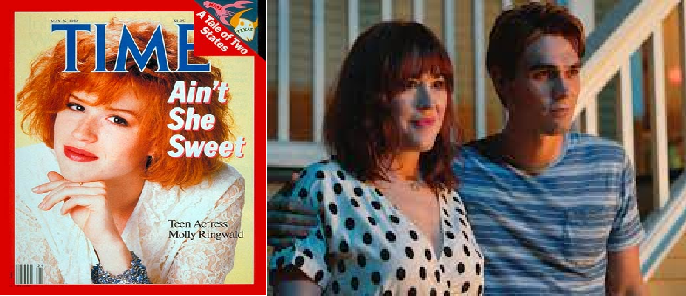 A parceria Ringwald e John Hughes quando este se magoou quando a atriz se recusou a fazer o papel de Amanda Jones em “Alguém Muito Especial” (Some Kind of Wonderful), papel que iria para Lea Thompson. Molly ainda teve um papel importante ao lado de um jovial Robert Downey Jr em “O Rei da Paquera” (The Pick Up Artist) de 1987. Na década seguinte, Molly recusou dois papeis importantes: o de Vivian em “Uma Linda Mulher” (Pretty Woman) que foi para Julia Roberts e o e Sally em “Harry & Sally Feitos Um Para o Outro” (When Harry Met Sally) que foi para Meg Ryan. Mais tarde fez teste mas perdeu o papel da xará Molly em “Ghost” que foi para Demi Moore. Na década de 90 sua carreira caiu no ostracismo com papeis pouco ou nada relevantes na TV ou no cinema. Casou-se pela primeira vez em 1999 com o romancista francês Valéry Lameignére mas o casamento durou só três anos. Em 2007, casou-se novamente com o editor de livros Panio Gianopoulos com quem teve três filhos. Essa ruiva Californiana se reinventou nos anos 2000 escrevendo um livro de memórias em 2010 entitulado “Molly Ringwald: Getting The Pretty Back Friendship, Family and Finding The Perfect Lipstick”, iniciando uma modesta carreira nas letras, que dois anos depois levou ao romance “Molly Ringwald: When It Happens To You – A Novel in Stories”. Em 2008 voltou a atuar com relativo sucesso fazendo o papel de mãe de Shailene Woodley na série “The Secret Life of the American Teenager”. Em 2013 gravou dois Cds com talento herdado do pai, um pianista de Jazz que era cego. Mais recentemente Molly esteve na série Riverdale como a mãe de Archie (K.J.Apa). Lamentável que a juventude atual não tenha no cinema uma musa como Molly Ringwald que nos faça lembrar que só se tem dezesseis anos uma vez na vida, nos faça sentir gatões mas que sobretudo deixe uma marca tão positiva que nos faça sentir aquele amor platônico, uma namoradinha que se tivéssemos ainda nos faria eternamente jovem, e nem precisaria vir de Rosa Shocking.