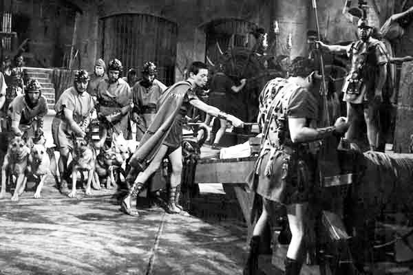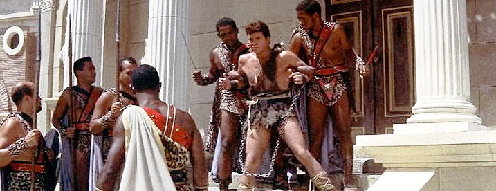 que pretende resgatar os cristãos liderando uma revolta de escravos, juntamente com seu parceiro de luta Cátulo (Burt Nelson, 1932-1998), um gladiador de forte temperamento que também segue o