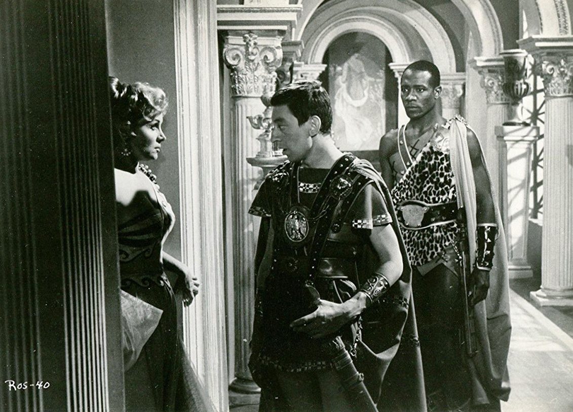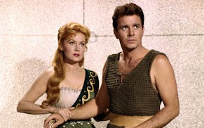 | …Víbio, seu escravo, vivido por Lang Jeffries, que se tornaria marido de Rhonda Fleming na vida real. |
