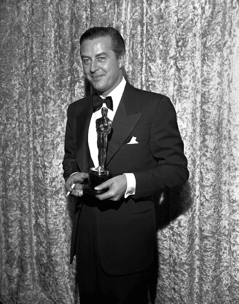 | Ray Milland e seu Oscar de Melhor Ator de 1945 por FARRAPO HUMANO. |