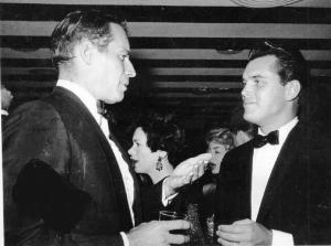 | Charlton Heston e Jeffrey Hunter (que foi “Cristo” em REI DOS REIS de Nicholas Ray, em 1961) em evento de 1962. Ao fundo, o perfil da Senhora Heston, Ligia Clarke. |