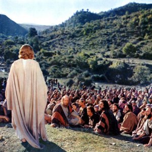| O SERMÃO DA MONTANHA – Uma das cenas em que o rosto de Cristo nunca é focalizado na versão de BEN-HUR (1959). |