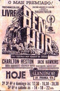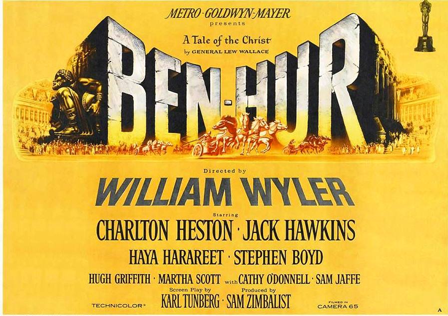 Sobre Ben-Hur de 1959, trata-se de um épico grandioso e espetacular sobre a agitada e emocionante vida de um príncipe hebreu que, devido a inesperadas circunstâncias, se torna escravo, nobre romano, e é aclamado como herói das corridas de quadrigas, e cujo destino se cruza, por mais de uma vez, com o de Jesus Cristo. William Wyler, dispondo de um orçamento fantástico, assinou um filme admirável, pela sua dimensão aventureira, romântica, religiosa, mística e heroica, que continua até hoje, passados mais de 60 anos de seu lançamento, impressionar pela sua grandiosidade espetacular e pela sua comovente dimensão humana.