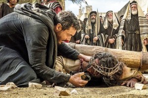 | Ben-Hur tenta ajudar Jesus no caminho do Calvário. |