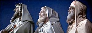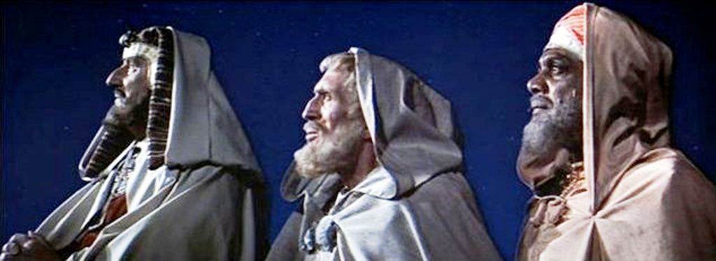 | OS TRÊS REIS MAGOS de BEN-HUR de 1959: Finlay Currie (Balthazar), Richard Hale (Gaspar) e Reginald Lal Sing (Melchior) |