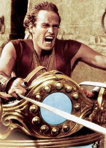 | Ben-Hur pronto para a Corrida de Quadrigas. |