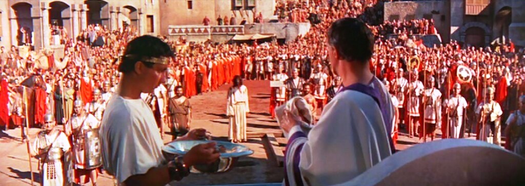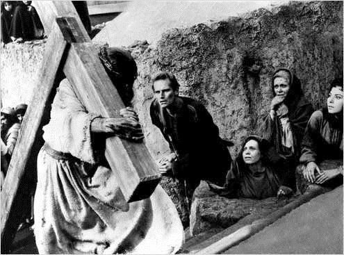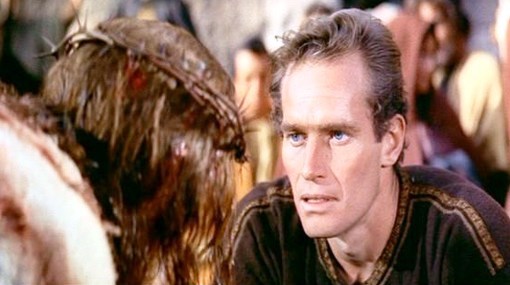 Wyler jamais mostra o rosto do Cristo de Heater, mas lhe dá sempre uma suavidade confortadora, chegando a atingir uma elevação comovente tanto nas sequencias do julgamento de Jesus por Pilatos (Frank Thring, 1926-1994), o caminho para o calvário, e a agonia na cruz.