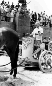 | William Wyler se “arriscando” a conduzir uma das quadrigas |