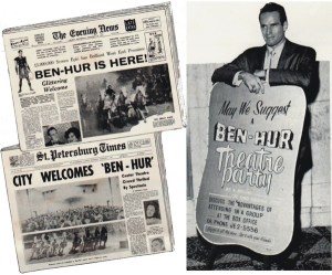 | Charlton Heston e sua publicidade para BEN-HUR, em 1960. |