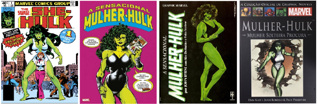 Seu surgimento editorial se deu em novembro de 1979 com o lançamento do título THE SAVAGE SHE-HULK, cuja primeira edição foi escrita pelo próprio Stan Lee e magistralmente desenhada pelo grande John Buscema. Assim, nos era apresentada Jennifer Walters, uma simples advogada que foi procurada por seu primo Bruce Banner, que desejava conhecer as implicações legais das atitudes destrutivas de seu monstruoso alter ego (o Hulk, como se vocês não soubessem) poderiam acarretar! Interessante que – ainda que se trate de uma informação “conveniente” para a narrativa – é nessa história de origem da verdinha que descobrimos que Banner começou sua vida acadêmica na medicina e depois a trocou pela Física Nuclear! Na época, Jennifer estava em trabalhando em casos que envolviam uma poderosa máfia; e por conta disso, foi vítima de uma atentado na companhia do primo que, para salvar sua vida, providenciou uma transfusão de sangue de emergência! Com sangue gama irradiado correndo em suas veias, Jennifer passou a sofrer mutações iguais às do primo, em momentos de fúria, se tornando, então, a SELVAGEM MULHER-HULK, com o título passando para as mãos de David Kraft (roteiro) e Mike Vosburg (desenhos) a partir de sua segunda edição, e permanecendo basicamente com essa equipe criativa até sua derradeira edição, de número #25! A partir daí a Mulher-Hulk ficou sem um título próprio, mas passou a integrar os Vingadores, já que Jennifer Walters passou a ter total domínio sobre as próprias ações quando se tornava seu alter ego, de tal forma que passou a AMAR ser a Mulher-Hulk! Ainda que suas participações no título dos Vingadores tenha ajudado a definir seu status e suas características que a diferenciavam do Hulk, o maior responsável por alçar a verdinha ao panteão dos grandes personagens foi o célebre JOHN BYRNE, que integrou a personagem ao Quarteto Fantástico quando do encerramento das Guerras Secretas originais, uma vez que Ben Grimm havia decidido ficar no planeta do Beyonder depois do fim do conflito!