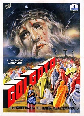 Estreado no Brasil com o subtítulo de “O Grande Drama da Humanidade”, e baseado no romance “O Mártir do Gólgota”, de Enrique Perez Escrich (1829- 1897), Golghota foi produzido na França em 1935 e dirigido por Julien Duvivier (1896-1967). Além de obter aplausos de grandes críticos da época, foi rotulado pelo jornal francês Le Salut Public, como “a melhor construção da Antiguidade até agora conseguida”. Esta obra de Duvivier foi reprisada nos cinemas do Rio de janeiro na década de 1950, sob o título original do romance de Escrich. A fita comprova a qualidade do intérprete de Cristo, Robert Le Vigan (1900-1972), sério, veemente, distanciado da linha do Cristo apostólico romano. Um Cristo quase hierárquico, cujo o roteiro tem um diálogo fiel ao espírito do Evangelho, dito por astros como Harry Baur (1880-1943) como Herodes Antipas; Jean Gabin (1904-1976), como Pilatos; Edwige Feuillère (1907–1998), como Prócula, esposa de Pilatos; e Lucas Gridoux (1896–1952), como Judas.