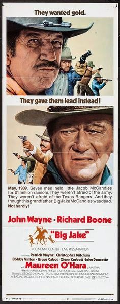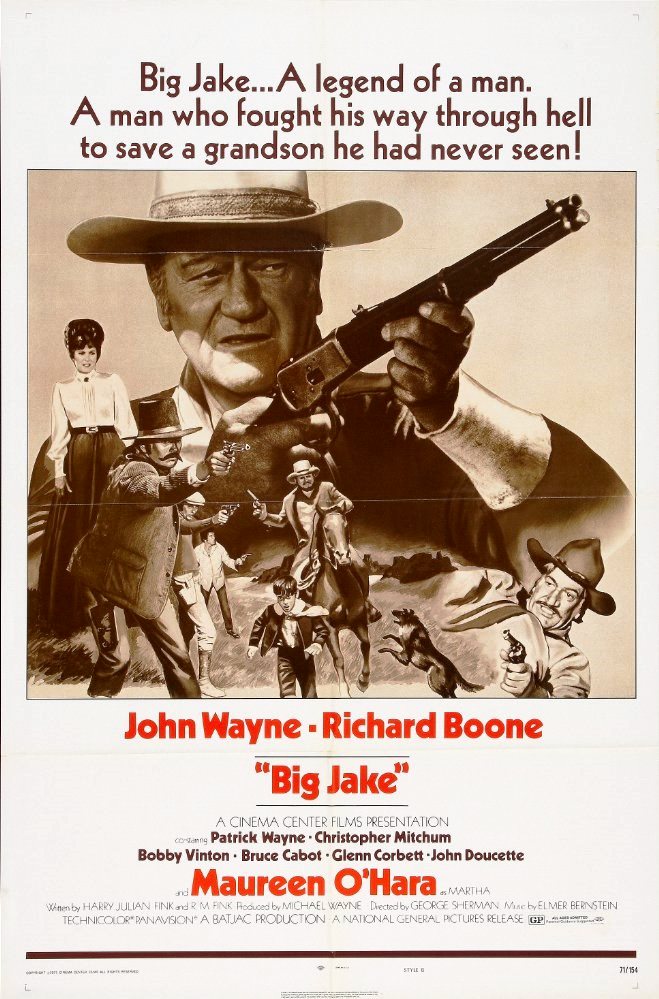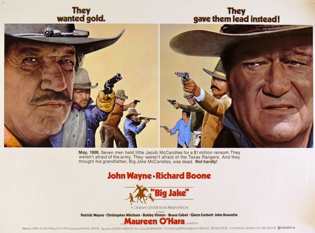 Aos 65 anos de idade, o bom e velho Duke retoma a pista legendária dos justiceiros do Oeste que tão bem o consagrou. Wayne, no papel do aventureiro Jacob “Big Jake”  McCandles, em realidade um rico barão do gado, afastado de sua casa no Texas, da mulher Martha (Maureen O’ Hara), e dos filhos James (Patrick Wayne), Jeff (Bobby Vinton), e Michael (Christopher Mitchum, filho do lendário ator Robert Mitchum, com quem Wayne contracenou em El-Dorado, em 1967. O papel havia sido oferecido à Jeff Bridges, que se recusou a trabalhar com Wayne), é chamado pela esposa, que a contragosto, por achar o marido uma pessoa “desagradável demais”, vai precisar de sua ajuda. O neto que Jake ainda não conhece, chamado de “Pequeno Jake”, foi raptado pelo bando de John Fain (Richard Boone, 1917-1981), um renegado que agora provoca pânico nos arredores do Rio Grande com sua quadrilha de facínoras. Boone, formidável vilão no cinema e herói como o Paladino do Oeste na TV, foi um amigo querido de John Wayne na vida real, com quem havia trabalhado em O Alamo (1960), e ainda contracenaria em 1976 no derradeiro O Último Pistoleiro, de Don Siegel, o último filme de Wayne.