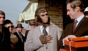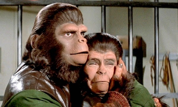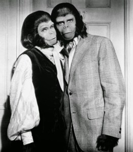| Cornelius (Roddy ,McDowall) e Zira (Kim Hunter), desta vez no mundo dos humanos… |