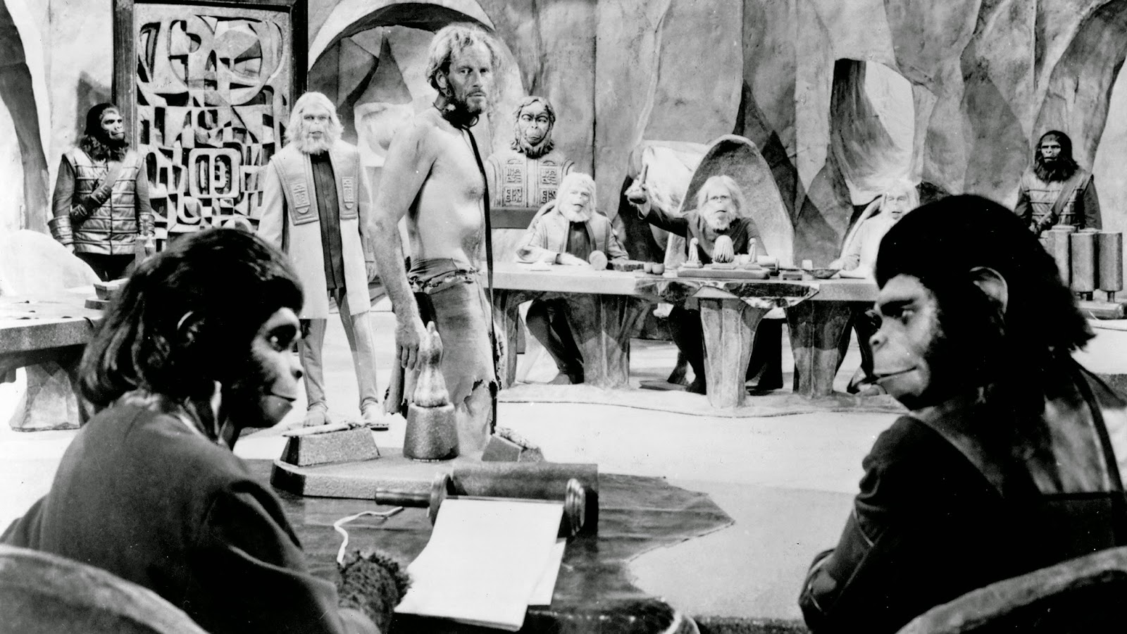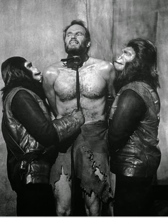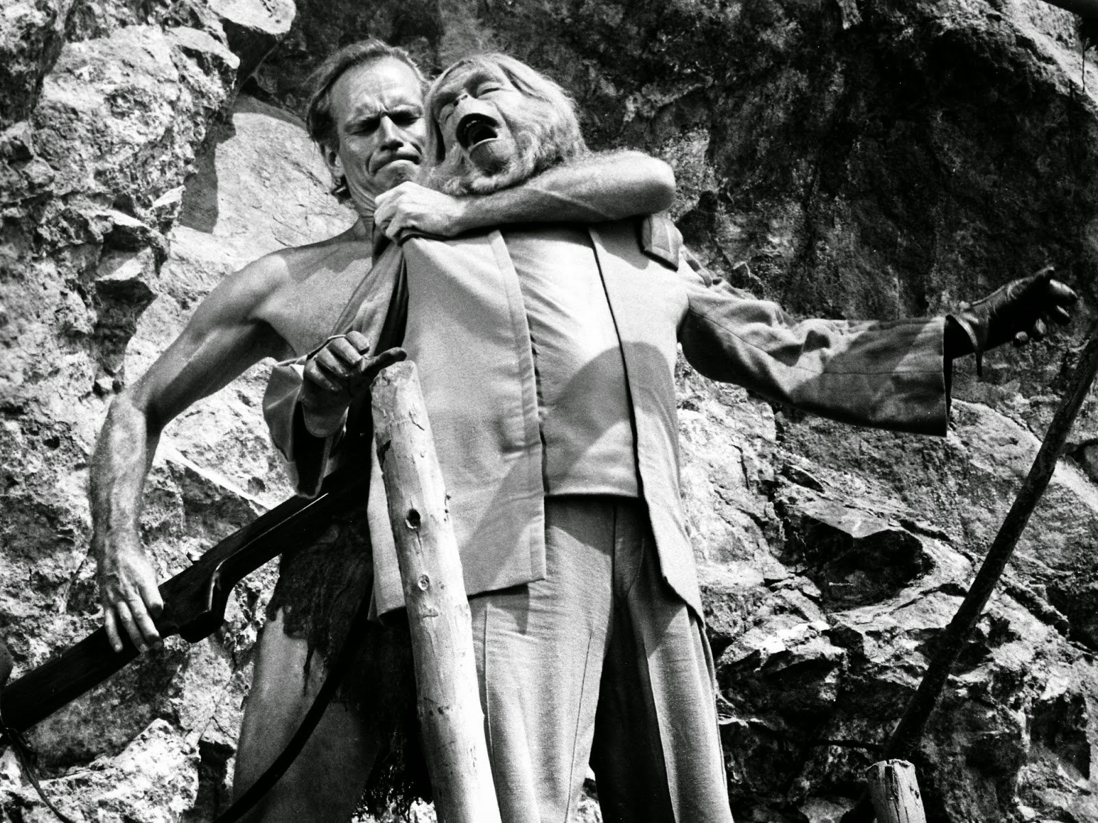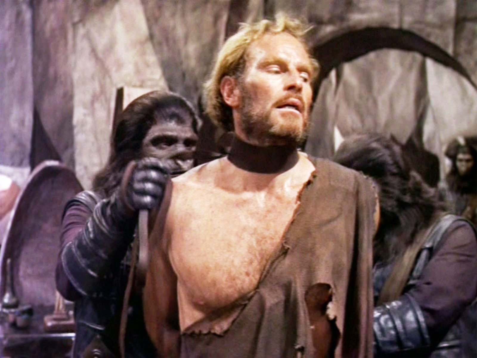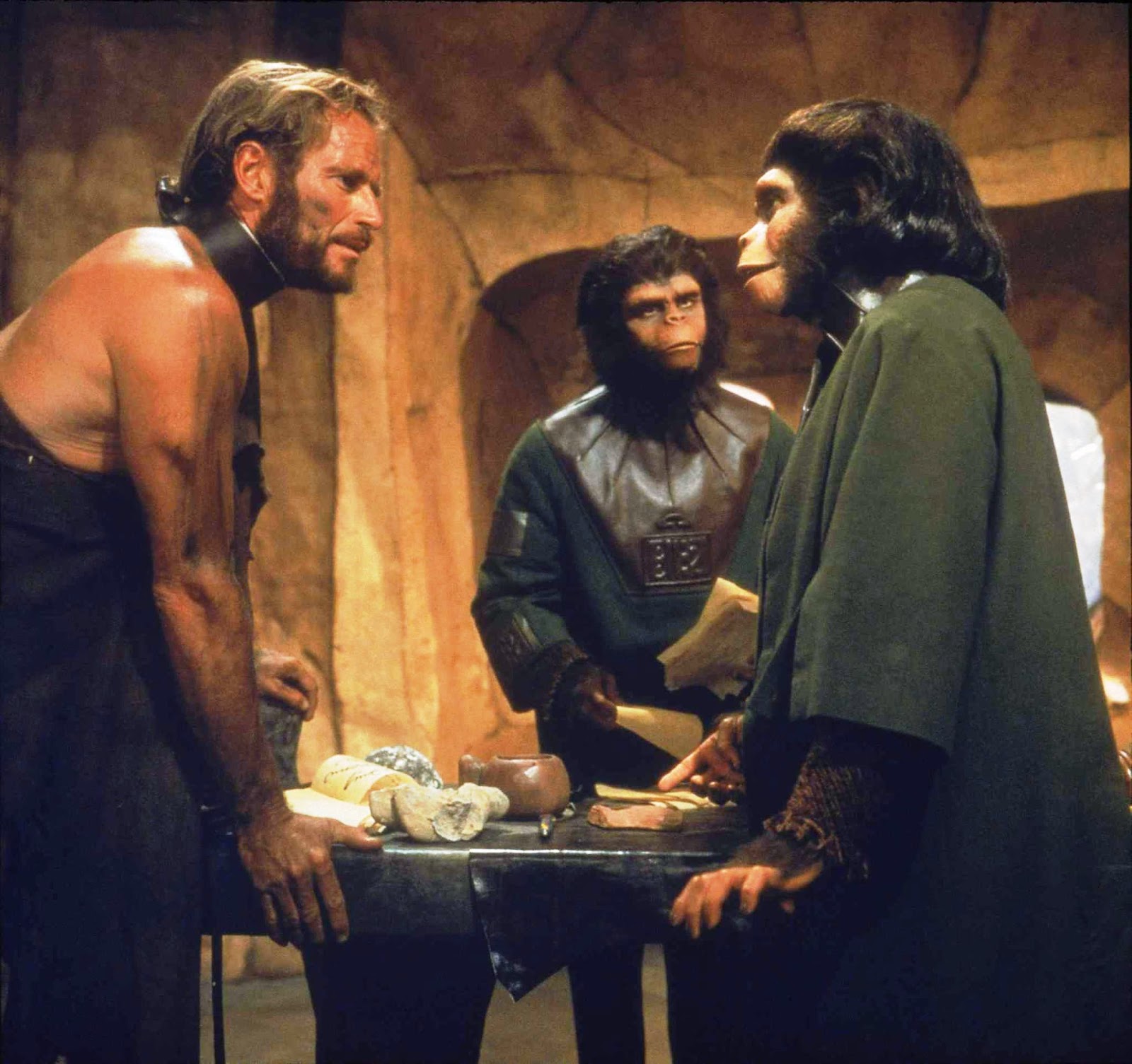 (1893-1973) no papel do Dr. Zaius, e Charlton Heston como o astronauta George