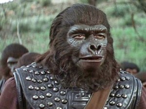 inteligente chimpanzé, César (Roddy McDowall), filho de Zira e Cornelius.
