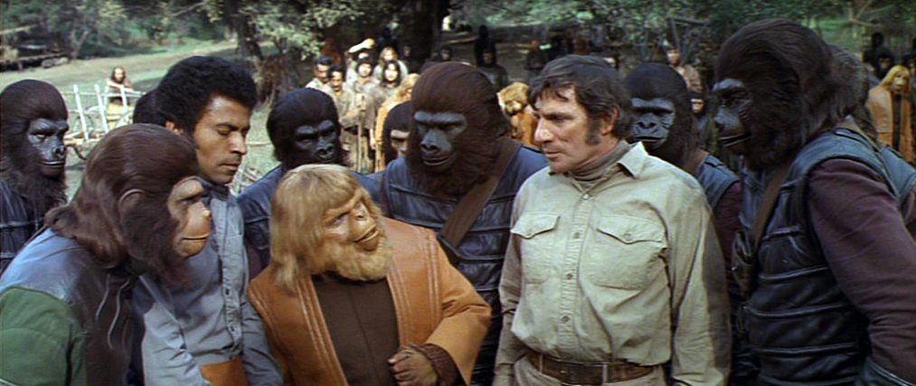 morte do líder dos gorilas. A fita termina com macacos e seres humanos vivendo