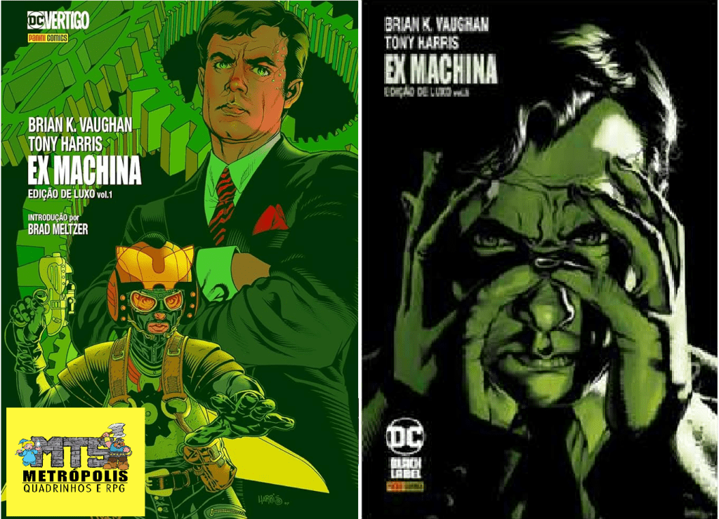 EX-MACHINA narra as aventuras – melhor dizer “desventuras” – do prefeito Mitchel Hundred, outrora conhecido como o herói Grande Máquina. História do selo Vertigo, rebatizado para BLACK LABEL recentemente, e por isso, uma história autocontida onde você não precisa ter lido absolutamente NADA antes para acompanhar a saga de Hundred, que se estende pelos 5 álbuns publicados pela editora Panini Comics, que reúnem as edições EX MACHINA números 01 a 50, entre os anos de 2004 a 2010.